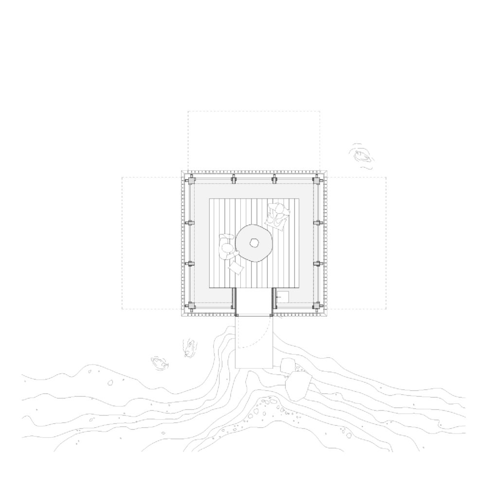 Namiņu konstrukciju paredzēts veidot, izmantojot tradicionālās koka būvniecības metodes — veidojot koka savienojumus un iztiekot bez skrūvēm. Mājiņu ārējo veidolu noteikusi pierobežas telpiskā struktūra. Apceļojot šo reģionu, Marta novēroja, ka pierobežai raksturīgas vertikālas tipoloģijas — baznīcas, kapelas, robežsargu torņi, graudu kaltes —, tāpēc arī namiņš veidots vertikāls. Tas ļāvis pirmajai mājiņai uz jumta izveidot nelielu skatu platformu no kuras paveras plašāks skats uz apkārtējo ainavu. Tāpat apkārtni iespējams izpētīt, atverot slēģus, kas izveidoti visās četrās ēkas pusēs. Uz skatu platformu var nokļūt caur apaļu lūku telpas griestos, kas simboliski iezīmē namiņu kā punktu kartē. Iecerēts, ka arī citu namiņu dizainā tiks integrēts līdzīgs punkts — kāds apaļš, funkcionāls objekts, kā podnieka virpa, piknika galds vai dzirnakmens.