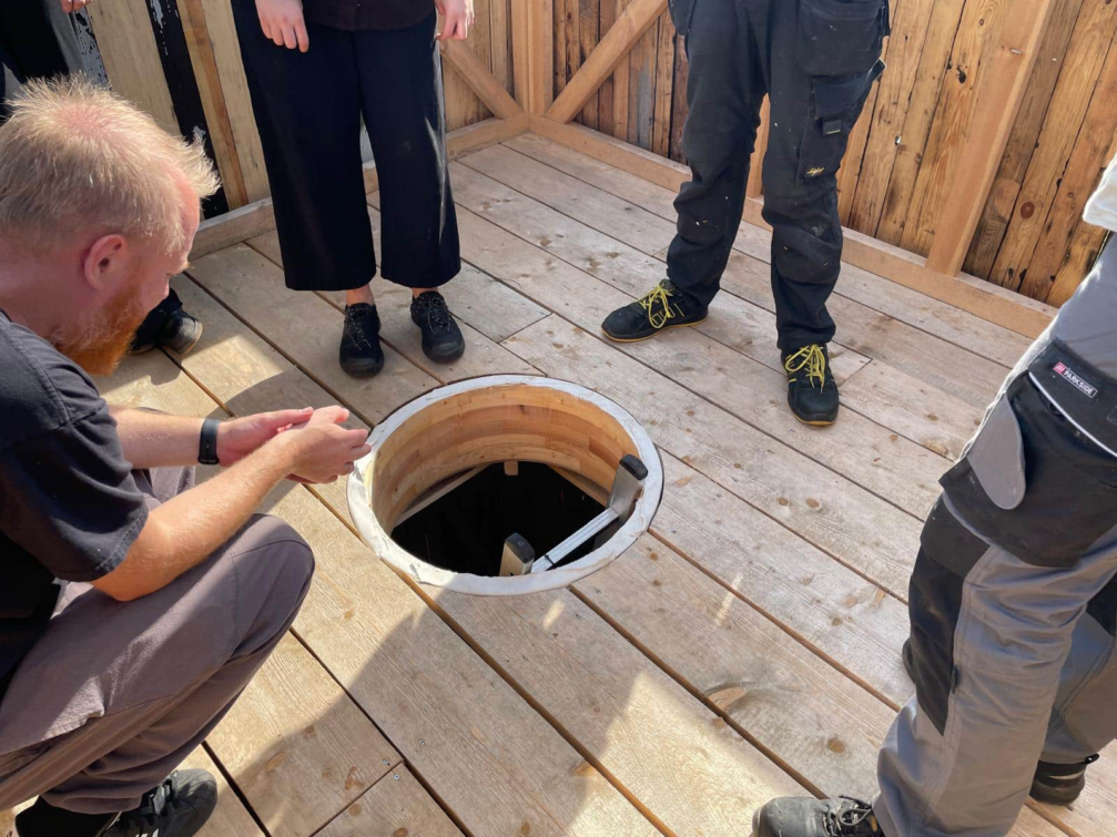 Pirmo namiņu Dagdā uzmanīt pieteicies kaimiņš, bitenieks Igors, kurš vēl nepabeigto struktūru izmantojis, lai vērotu saulrietu. Kā jau kārtīgs saimnieks savā sētā viņš daudz ko cēlis paša rokām, tāpēc novērtējis arī pārgājienu namiņa dizaina detaļas, kā vecos fasādes dēļus un laukakmeņus, uz kuriem mājiņa balstīta. Savos krājumos kaimiņš atradis arī piemērotu materiālu kāpnēm, kas ved uz skatu platformu. Tās darinātas no vecām ilksīm zirga iejūgšanai.