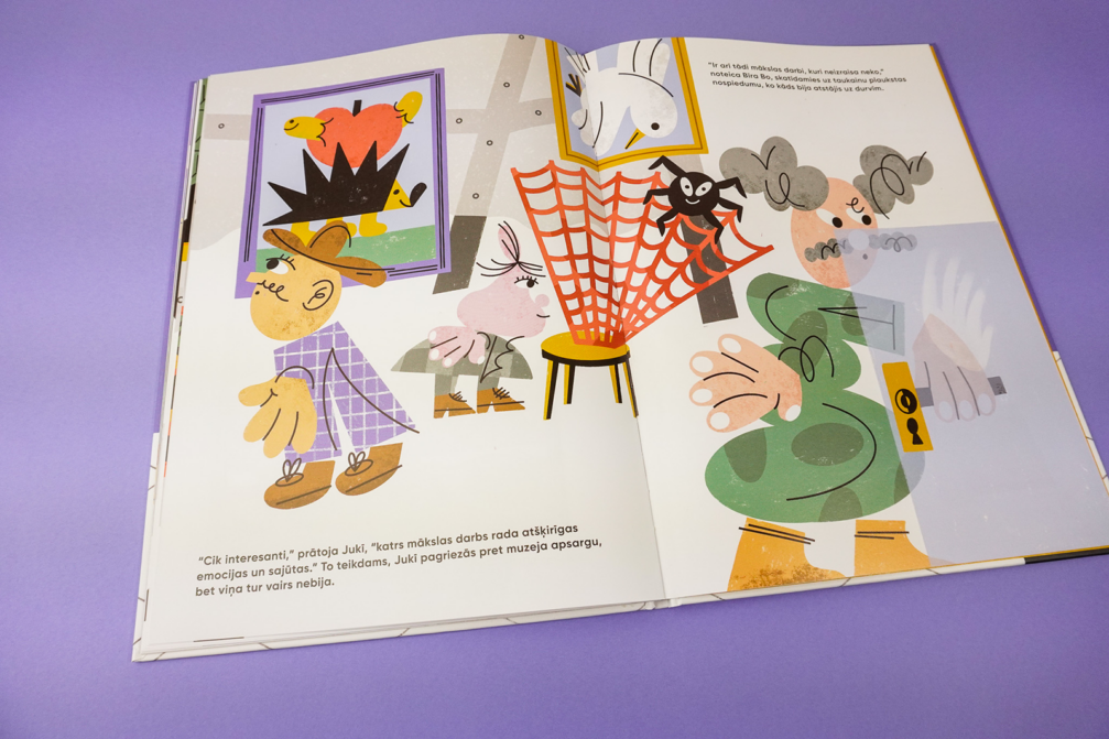 Sērijas otrajā stāstā «Jukī muzejā», kā jau uzvedina tās nosaukums, draugu trijotne dodas uz izstādi. Neparastais apmeklējums krāšņi atklājas košajās ilustrācijās — tajās var pētīt, kā draugi turpat pie kases ietinas garos biļešu ruļļos, kā arī aplūkot Zahara interpretāciju par izstādē «Sirrealismuss» eksponētajiem mākslas darbiem. «Muzejā norisinās visādas trakas lietas. Stāsts parāda bērniem (un arī lieliem bērniem), kas mūsdienās notiek muzejos un kādas sajūtas var raisīt laikmetīgās mākslas ekspozīcijas un notikumi,» stāsta Zahars.