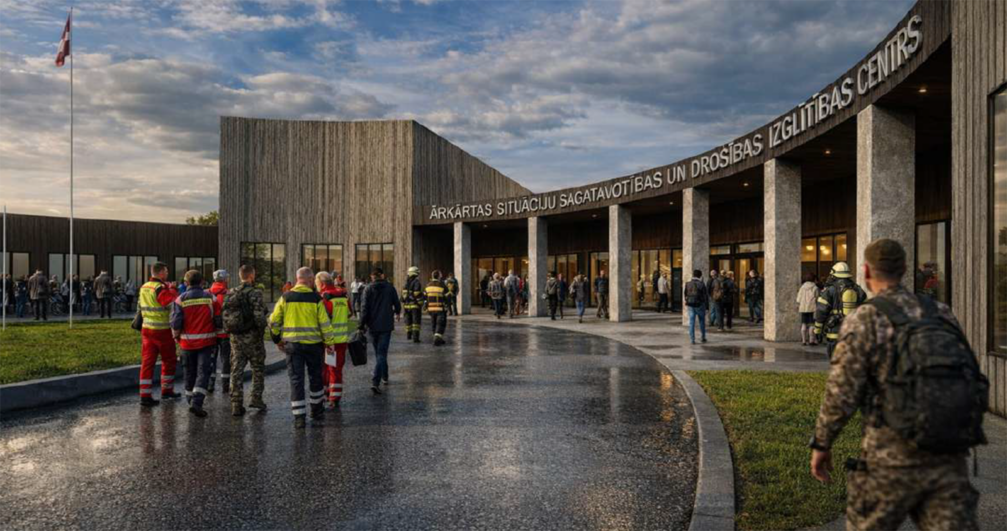 Globālo krīžu, klimata pārmaiņu, dabas katastrofu un militāro draudu pieaugums ir aktualizējis nepieciešamību izglītot sabiedrību par nepieciešamo rīcību ārkārtas situācijās un uzlabot arī tam nepieciešamo infrastruktūru. Karlīna Līna Sproģe pētījusi civilās aizsardzības arhitektūras piemērus un attīstības tendences dažādās valstīs un radījusi priekšlikumu ārkārtas situāciju sagatavotības un drošības izglītības centra izveidei bijušajā PSRS militārās infrastruktūras kompleksā — Tērvetes kodolraķešu bāzes zonā. Autores piedāvātā inovatīvā telpu programma apvieno simulāciju un praktisko mācību zonas, izglītojošās ekspozīcijas, muzeja un atpūtas funkcijas, kā arī kafejnīcu, viesnīcu un ārtelpu aktivitātes.