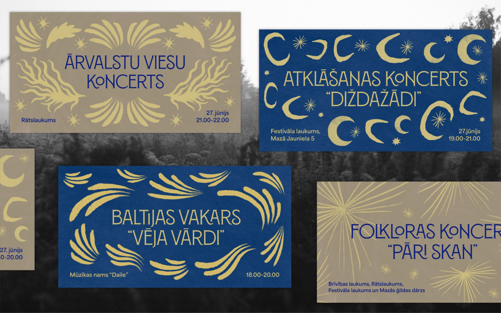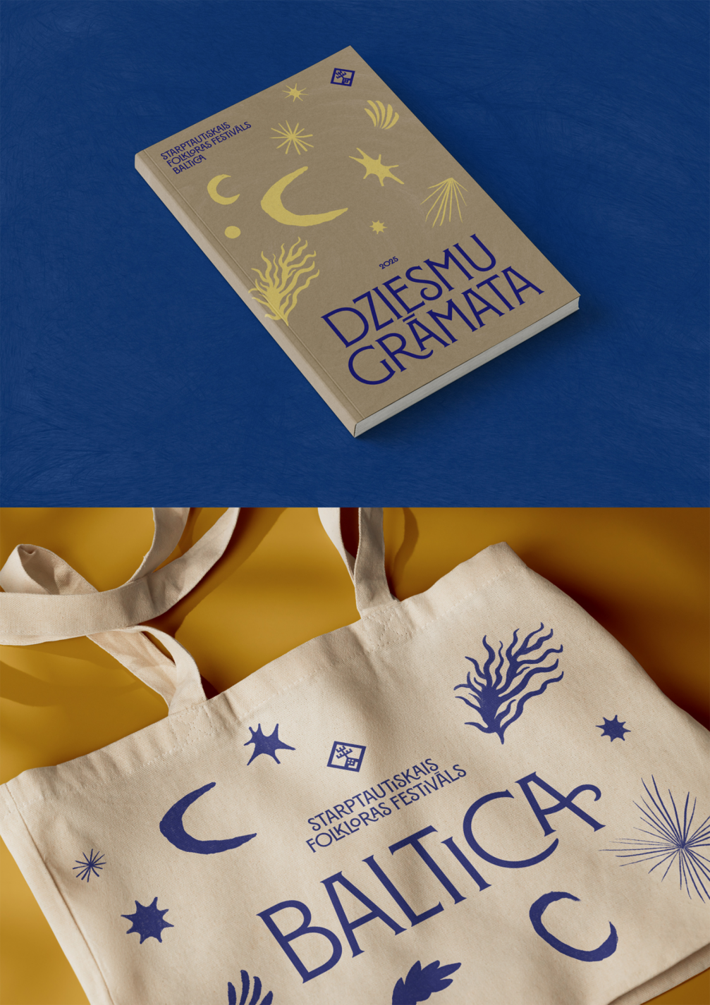 «Baltica» jaunā vizuālā identitāte ir modulāra sistēma, kuras kodolu veido ar roku zīmētu simbolu bibliotēka, ietverot būtiskākos dabas aspektus — debesis, pļavu, vēju, sauli, zvaigznes un ūdeni. Vizuālais risinājums apvieno šos mītiskos simbolus ar dabas iedvesmotu estētiku, radot laikmetīgu un starptautiski saprotamu tēlu. Identitātes krāsu palete — debesu zilais un salmu dzeltenais — kalpo kā konceptuāla atsauce uz tradicionālo arheoloģisko villaini ar misiņa rotājumu rakstiem. Šis augstais krāsu kontrasts ļauj festivālam pilsētvidē parādīties tīrā, mūsdienīgā veidolā, vienlaikus saglabājot ciešu saikni ar etnogrāfiskajām saknēm. Izstrādātais darbs aptver radošo konceptu, vizuālo identitāti, digitālo komunikāciju un vides dizaina elementus, nodrošinot vienotu un spēcīgu festivāla tēlu.