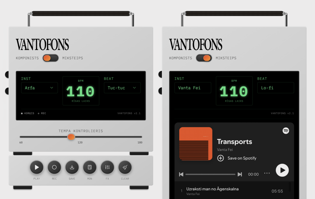 The virtual music tool is available on the website Vantofons.lv. The Vanta Fei — Transports music album is available not only on the project’s homepage but also on Spotify and Youtube.